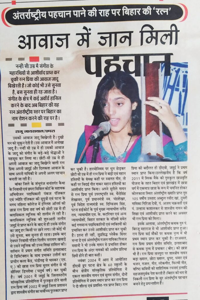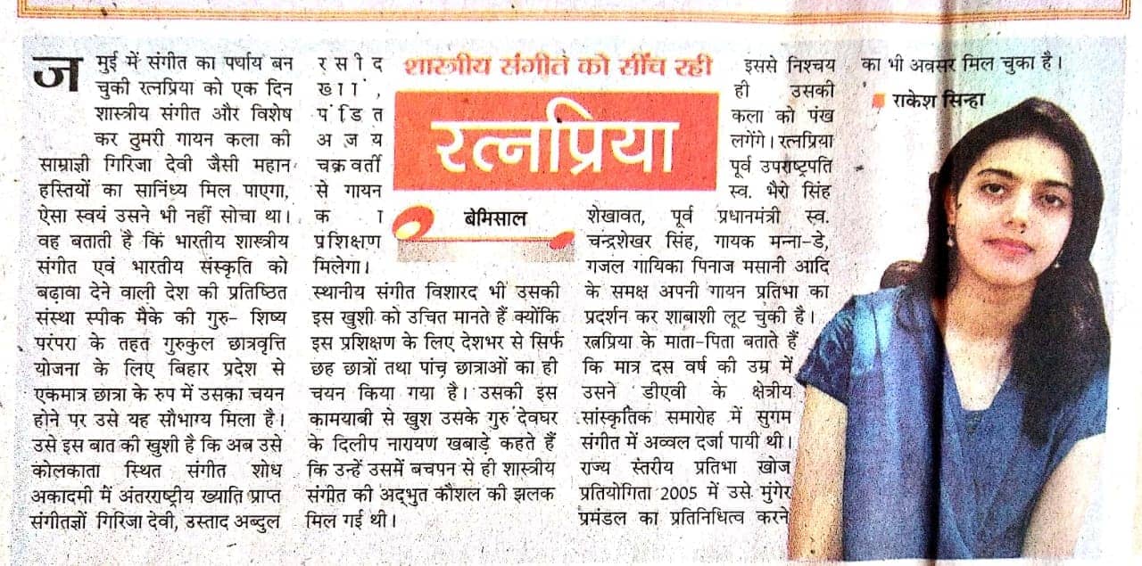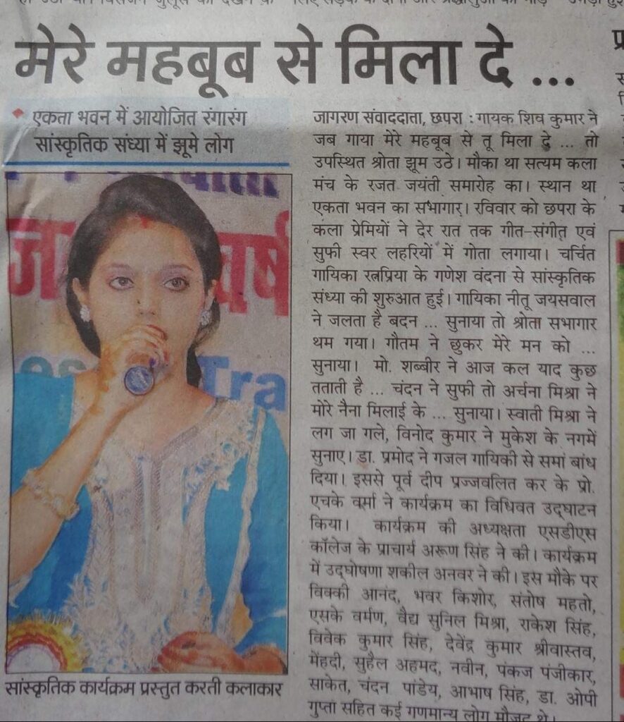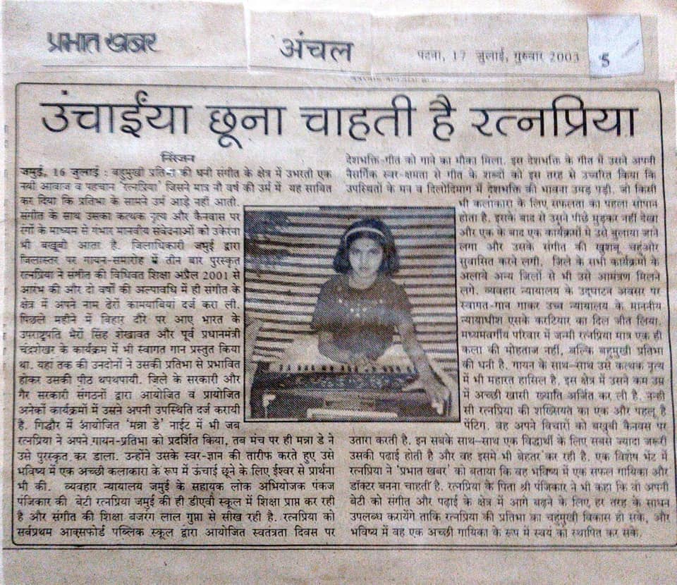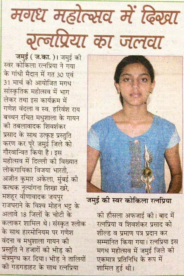 She has performed before the honourable former vice president of India, Late Shree Bhairo Singh Shekhawat, the honourable former prime minister of India Late Shree Chandrashekhar and many more dignitaries.