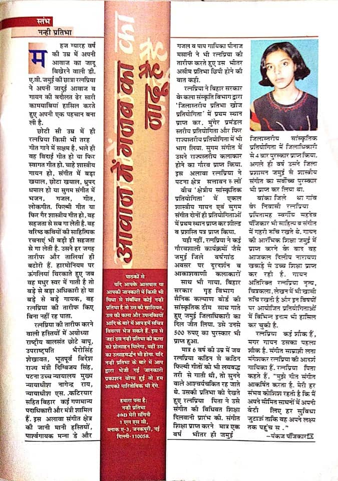 Ratnapriya always was a singing sensation. She received many awards from the dignitaries.