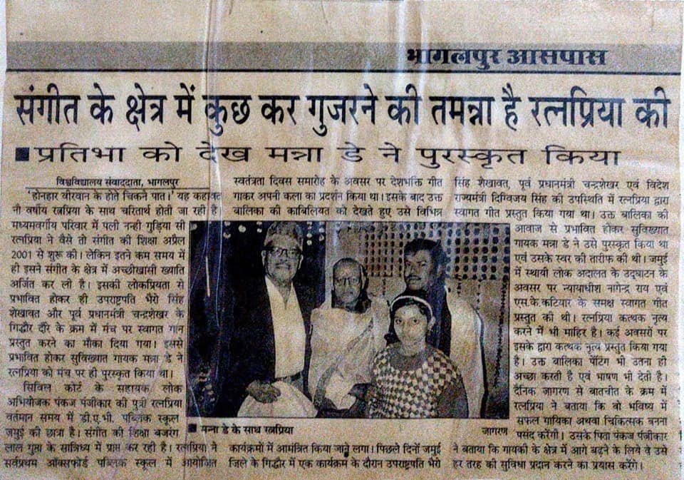 Ratnapriya Singing a song at the age of 9 in front of great playback singer of hinid cinema Late Mannadey Sahab