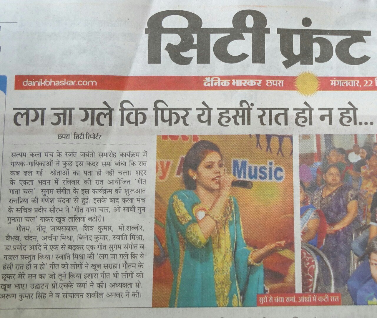 She got the opportunity to meet and learn some basics of ragas from Pt. Ajoy Chakrabarty at Sangeet Research Academy, Kolkata.
